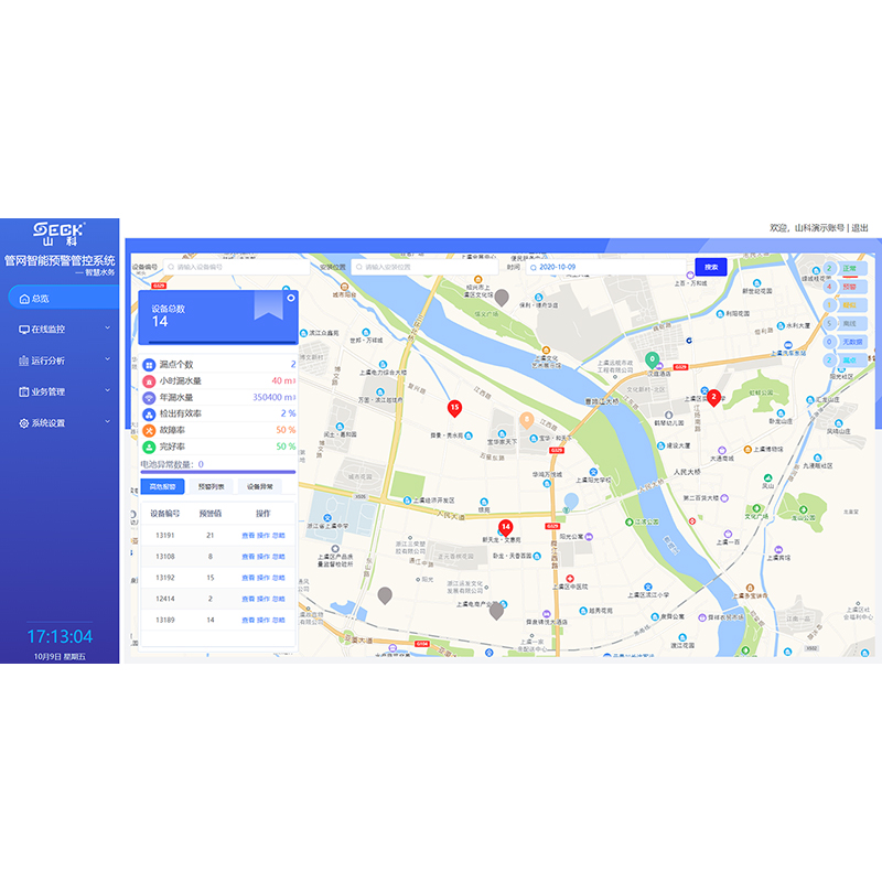 山科智慧水務(wù)平臺(tái)是對(duì)水務(wù)領(lǐng)域進(jìn)行感知物聯(lián)、集成分析、智能決策和展示執(zhí)行的一體化解決方案及系統(tǒng),實(shí)現(xiàn)水務(wù)營(yíng)運(yùn)的整體掌控,確保水務(wù)運(yùn)行安全,降低水務(wù)運(yùn)行漏損及成本,提升人員效益和水務(wù)設(shè)施壽命,提高水務(wù)經(jīng)營(yíng)管理 的核心能力。